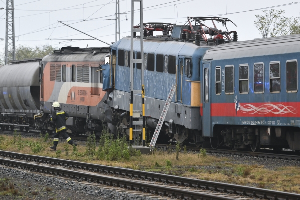 Ütközésben összeroncsolódott vasúti járművek a Hajdú-Bihar vármegyei Sáp vasútállomásán 2023. november 15-én. MTI/Czeglédi Zsolt