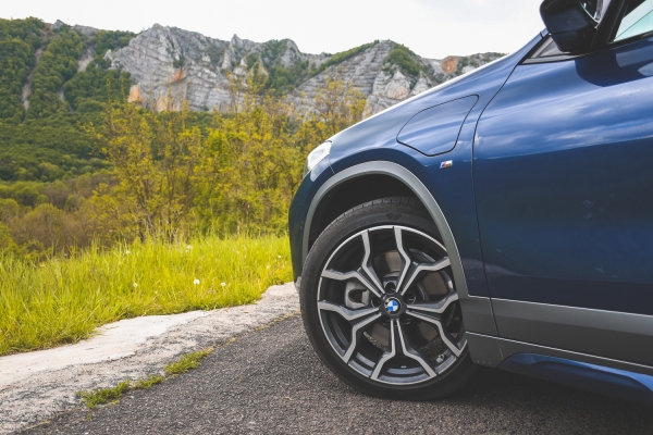 Konnektorról tölthető hibrid X2-jével azokat célozza meg a BMW, akik a stílust és az élvezetes közlekedést sem vetnék meg a zöldebb közlekedés közben, ugyanakkor a kínálat alsóbb polcairól válogatnának. Hiába osztoznak a padlólemezen, az X2 egyszerűen sokkal sportosabb jelenség, mint a puhább, ám tágasabb X1. Laposan elnyújtott vonalain és a C-oszlopra helyezett BMW jelvényén egyszerűen megakadnak a tekintetek, bár erre a tesztautó frissen bevezetett Phytonic kék fényezése, és a peres gumikon guruló 19-colos M-es felnik is rájátszottak.