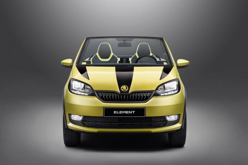 A Škoda Element 3 597 mm hosszú és 1 641 mm széles. Tető és ajtók nélkül készült, csupán csak két ülés kapott benne helyet. Az autó hasmagasságát 60 milliméterrel megemelték, amely így egy külső megjelenésében teljesen egyedi, klasszikus nyitott buggy lett. Az ezüstszínű alvázvédő burkolat az autó első és hátsó részén illetve a terepjáró gumiabroncsokkal szerelt 16 colos fekete/sárga SCORPIUS könnyűfém keréktárcsák kifejezetten látványos elemei a „diákautónak”. A magasan húzódó kerékjárati íveket fekete szegély keretezi, amely a kerekek között a küszöbök alján húzódik tovább, egy vékony fellépőt kínálva az utasok számára. Ajtók nincsenek, beszálláshoz egyszerűen csak a kockás mintázatú alumínium csíkkal dekorált oldalküszöbökön keresztül kell átmászni a sport kagylóülésekbe. A hátsó világítás LED technológiával működik. A Škoda diákja nagy figyelmet szenteltek a részleteknek is, így például az autó sárga (Sárkánybőr színű) féknyerge is az apróbb elemek iránti odafigyelést tükrözi.
