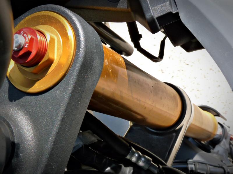 A műszeregység szintén megér egy misét, hiszen gazdagon és jól látható módon tájékoztatja a ridert minden információról, nem utolsó sorban 12 V-os dugaljt is rendelkezésre áll rajta, melyet navigációhoz, vagy telefontöltésre is használhatunk. Az analóg órában rejlő fordulatszám-mérő mellett fokozatkijelzés – amire gyakran szükség volt – külső hőmérséklet, átlagos- és pillanatnyi fogyasztás-mérő, valamint a kipörgés-gátló csillapítási fokozatát jelző digitális egység található.