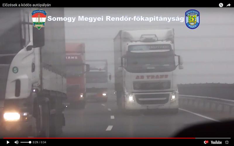 Ilyen időjárási körülmények között lehetőleg tartózkodjunk az előzéstől, továbbá ismételten felhívjuk a járművezetők figyelmét, hogy tilos előzni az azonos irányú forgalom számára két forgalmi sávval rendelkező autópályán és autóúton 6 óra és 22 óra között - a 7500 kilogrammot - meghaladó megengedett legnagyobb össztömegű tehergépkocsival, vontatóval, valamint e járműből és pótkocsiból álló járműszerelvénnyel!