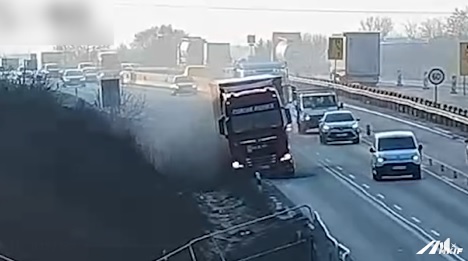 „A videón látható kamion hirtelen defektet kap, a helyzet pedig századmásodpercek alatt válik kritikussá. Ilyenkor egy több tonnás jármű irányíthatósága jelentősen romolhat, letérhet a sávból, felborulhat, vagy akár több másik járművet is magával sodorhat. Ebben az esetben a sofőr lélekjelenlétének és tapasztalatának köszönhetően sikerült megelőzni a bajt, és szerencsére nem történt komoly baleset.” – írta a közzétett videóhoz az MKIF.