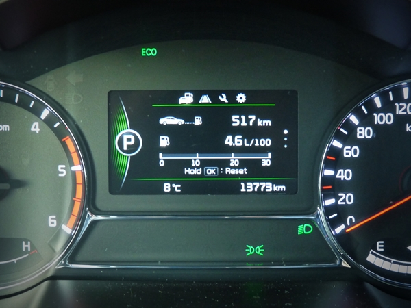 A Hyundai modellekből is ismert 1,7 literes, 136 lóerős dízel aggregát nem tartogat túl sok meglepetést. A 320 Nm-es forgatónyomaték már 2000-es percenkénti fordulaton jelentkezik, és a hatfokozatú automataváltó fokozatkiosztása teljes mértékben lehetővé teszi, hogy kézi beavatkozás nélkül abszolváljunk minden forgalmi helyzetet. Alapjáraton és autópálya tempónál kissé zajosnak ítéltük a gázolajos egység által generált zajokat, egyébiránt pedig a fogyasztás és a menetdinamika terén nem tapasztaltunk kifogásolni való részleteket. A kormányzás a koreai autóktól megszokott módon visszajelzésektől mentes, semleges benyomást keltett, a futómű pedig határozottan a kényelmi szempontok előtérbe helyezésével lett hangolva. Az utastérben nincsenek tobzódó formák, kiugró esztétikai elemek, azonban semmi sem olyan konzervatív, mint például egy német autóban. Úgy tűnik, a Kiások megtalálták a germán és a francia iskola közötti arany középutat. A műszerfal és a burkolatok egyszínűek, mégsem olyan szomorkás az enteriőr hangulata, mint például egy VW Passat hasonló színekkel felvértezett enteriőrje.