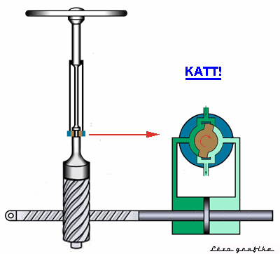 És most nézze meg azt a konkrét szerkezetet (katt a bal oldali ábrára!), ami e model szerint működik. A lényegen nem változtat az, hogy a "kis" rugó itt nem tekercs-, hanem torziós rugó.