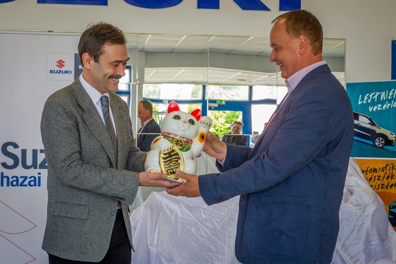 A szalagátvágást követően a Suzuki operatív igazgatója sok sikert kívánt a kereskedőnek, és átadta neki a Suzuki-kereskedések elmaradhatatlan kabalafiguráját, a vevőket szerencsehozó bal mancsával invitáló, pénzbőséget hozó porcelánmacskát.