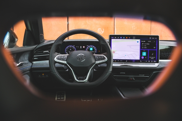 Bár ez elsőre ijesztően hangzik, a valóságban a piac egyik legjobban kezelhető szoftverét futtatja a Volkswagen, ahol minden pont ott van, ahol keresnénk, a klíma és a rádió azonnal állítható, és széles körben magunkra konfigurálhatjuk a felületét. Egyszer sem volt akadás vagy késlekedés és olyan egyszerű kezelni, mint egy okostelefont. Ahogy ekkora méretben elvárható, hátul is hatalmas a fej- és lábtér, dedikált klíma panellel és lenyitható könyöklővel. Épp akkora méretű a tetőablak, hogy a hátul ülőknek is élvezhető legyen, de előre is elég levegőt húzzon be – a szélterelője kevésbé hatékony.