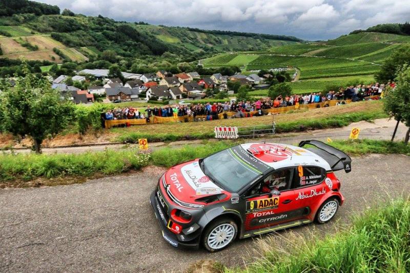 A Német-rali pénteki napján az élen haladó pilóta személye négyszer változott, mígnem Ott Tänak állt az élre az utolsó saras-aszfaltos szakaszon, és a napot végül 5,7 másodperces előnnyel zárta Andreas Mikkelsen előtt. A Citroënnél beugróként versenyző norvégtól senki sem várt ilyen jó szereplést azok után, hogy az előző két versenyén nem találta a ritmust, és a francia márka autóival Mexikó óta senki sem tudott dobogóra állni.