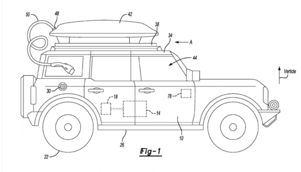 A benyújtott szabadalom Ford Broncóra emlékeztető terepjárót ábrázol, amely tetősínjére van erősítve a hagyományos tetőboxhoz megtévesztésig hasonlító pótakku. Annyi a különbség, hogy „buborék” hátuljából egy töltőkábel lóg ki, s javarészt csak ebből derül ki, hogy ez nem tetőcsomagtartó, hanem utántöltéshez való tartalék akkumulátor.