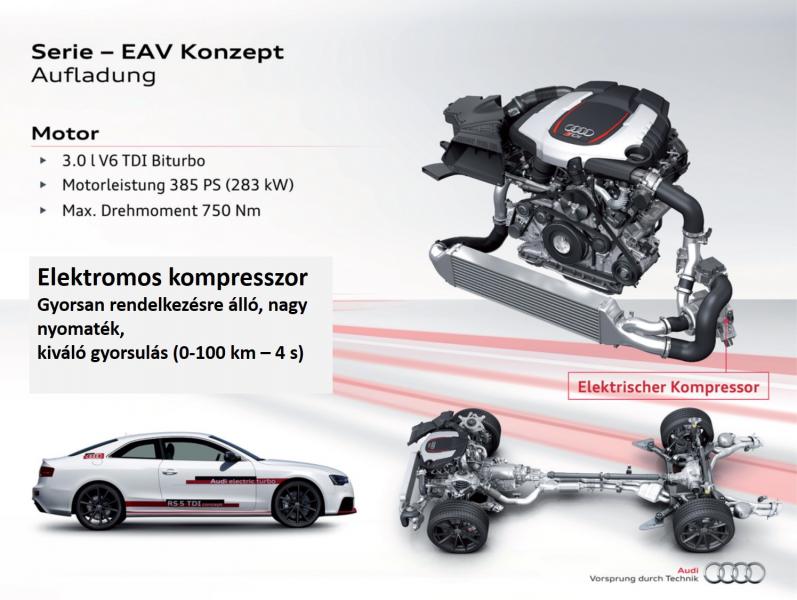 A TDI szériamotorok jövőjét újabb fejlesztések határozzák meg. A V6 TDI e-tron elektromos hajtású turbókompresszort kap és többnyire hibridházasságban lesz a hajtáslánc része.