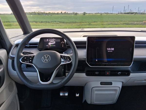 Az elektromos kisbuszt jó vezetni, a 286 lóerő és 560 Nm nyomaték bőven elég mindenre. Az akkumulátor nettó 86 kWh-s, a 2,6 tonna saját tömegű ID.Buzz vegyes WLTP hatótávja hivatalosan 485 kilométer, ami persze kánikulában légkondizva, megrakva, nagyobb tempónál akár 400 alá is csökkenhet. A futómű hangolása inkább kényelmes, mint sportos, ami teljesen érthető egy ilyen kisbusztól.