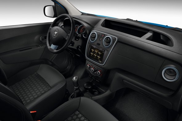 Belül a kék díszítőelemek, és a speciális, Stepway feliratú üléshuzatok különböztetik meg a szabadidő-autós változatokat a normáltól.