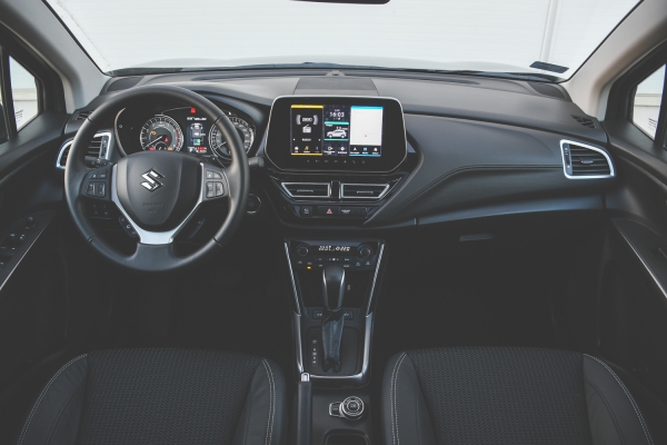 Mindezt legalább olyan ügyesen csinálja, mint a Dacia Duster. Mindkettejüknek meglepően ügyes az összkerékhajtása, és a hasmagasság is kellően nagy, ami ma már nagy szó a SUV-ok világában. Ráadásul mintha direkt a hazai utakra hangolták volna az S-Cross futóművét. Kellemesen puhán, mégis stabilan visz át a legkátyúsabb utakon is, miközben síri csend van az utastérben. Nem is emlékszem rá, hogy valaha ennyire kényelmes lett volna egy Suzuki. Csak pihensz a kihúzható könyöklőn, a 6-fokozatú automata pedig teszi a dolgát tisztességesen.