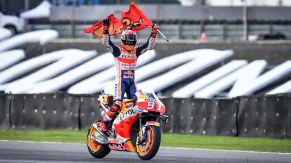 Marquez 2013, 2014, 2016, 2017 és 2018 után ünnepelhetett ismét a MotoGP-ben, előzőleg 2010-ben 125 kcm-ben, 2012-ben pedig Moto2-ben bizonyult a legjobbnak. Összesen 201 GP-n indult, ezekből 79-et nyert meg, 130-szor állt dobogóra, és 89-szer rajtolhatott az első helyről. Az idei vb-sorozat két hét múlva Japánban folytatódik.