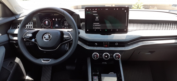 A Superb nem „száműzte” az utastér és a műszerfal összes fizikai kezelőszervét, jól ötvözi az érintőképernyőt és gombokat. Három nagyobb forgó-nyomó tárcsával több funkció, a klíma, a hifi és a menetmód választható is kezelhető. Így nem kell mindenért a menürendszerben kutakodni, ami figyelemelterelő és balesetveszélyes.
