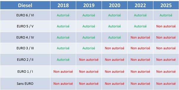 A hétfőtől érvényes korlátozás az Euro 0-ás, és Euro 1-es besorolású, valamint a 22 évnél idősebb dízel üzemű gépjárművekre vonatkozik. 2019 elejétől az Euro 2-es besorolású és a 19 évesnél idősebb dízelautók nem hajthatnak be a fővárosi régióba. 2020-tól az Euro 3-as, és a 15 évnél idősebb dízelek, 2022-től az Euro 4-es és 12 évesnél idősebb gépjárművek, 2025-től pedig az Euro 5-ös és 9 évesnél idősebb dízelautókat is kivonják a brüsszeli régió forgalmából.