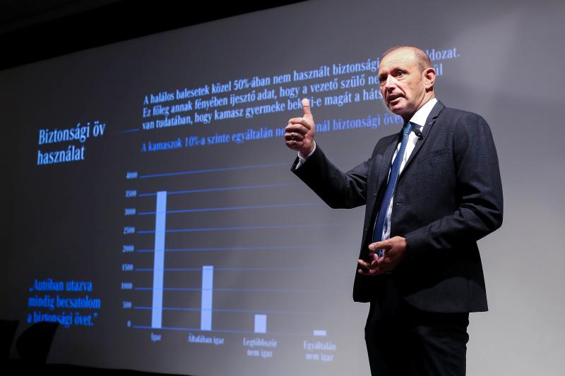 Kiss Csaba arról beszélt, 1990-ben volt a mélypont Magyarországon, akkor 2400-an haltak meg közlekedési balesetben. Az utóbbi években ez a szám hatszáz körüli. Fájdalmas, hogy évente 10-11 tizennégy év alatti gyermek is meghal balesetben, több mint a fele gépkocsiban utazva veszti életét.