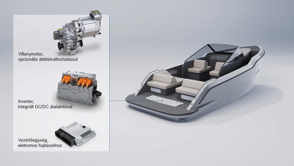 Eddig a Bosch kínálatában a 24 méternél rövidebb járművekhez volt elérhető az elektromos hajtáslánc. A kisebb hajók, jachtok esetében a villamosítási készlet három kulcselemből áll: vezérlőegységből, 400 voltos villanymotorból és inverterből – integrált DC/DC átalakítóval (INVCON).