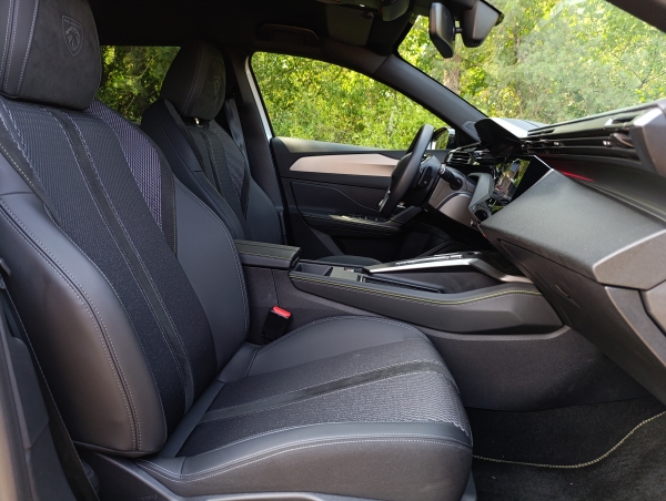 Nálam a belépő szintet jelentő, 145 lóerős mild hybrid hajtáslánccal járt, de létezik belőle tisztán elektromos, és idéntől dupla kuplungos automatával párosított, konnektoros hibrid is. Ezutóbbi hajtás még a 3008-ben debütált, most pedig megkapta a 308 és a 408 is. Furcsa, de az átmeneti időszakban elérhető ugyanez a PHEV hajtás 8-fokozatú hagyományos automatával, és a 7-fokozatú duplakuplungossal is. Szerencsére ezek közül egyikkel sem kellett foglalkoznom, ugyanis az én tesztautómban 6-fokozatú e-DCT váltó viszi tovább az 1,2-literes, háromhengeres motor erejét az első kerekek felé.