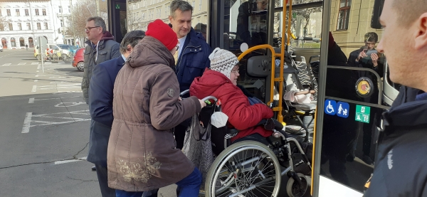 Utóbbi működését be is mutatatták a sajtótájékoztató utáni próbaúton, kerekesszékes és babakocsi utas is felszállt az újságírók és a város, illetve a Volánbusz vezetői mellé. Az utasok kényelmét wifi és USB-csatlakozók is szolgálják, az előbbire másodpercek alatt, mindenféle nehézség nélkül sikerült felcsatlakozni, a jelerősségre, az átviteli sebességre sem lehetett panasza az újságíróknak. A fedélzeten vizuális és hangbemondásos utastájékoztató berendezés, valamint kamerarendszer üzemel.