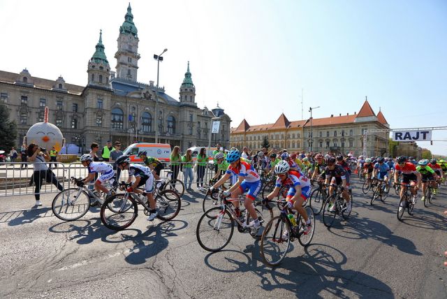 A belvároson keresztül mennek a bringások. (kép: gyor2017.hu)
