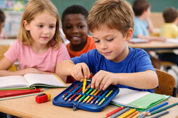 - Igen. Elsősorban szükséged lesz a tolltartóra. Benne ceruzával és színesekkel, radírral és hegyezővel.
