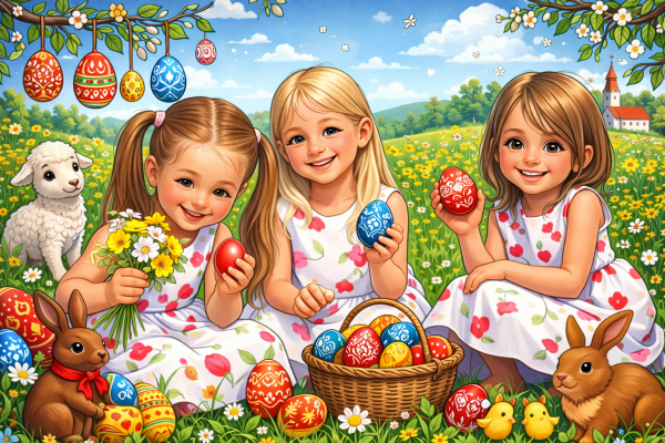 - Örülök neki drágáim, és tudjátok azt, hogy mit ünneplünk húsvétkor, tudjátok, miért megyünk locsolni, miért festünk tojást? – kérdezte az édesapa.