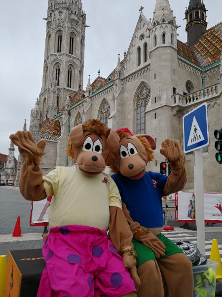 Tóbiás és Balambér már reggel 9 órától várta a gyerekeket, kicsiket, nagyokat, hogy részt vegyenek a közlekedésbiztonsági élményprogramon. A hat állomásos foglalkoztató feladatsoron leginkább a gyermekek mentek végig, ahol a tudatos közlekedéssel, baleset megelőzéssel, újraélesztéssel, a kerékpár kötelező felszereléseivel kapcsolatos feladatokat, teszteket vagy tudást kellet magukévá tenni. Mindezek elvégzése után értékes ajándékcsomagokat vehettek át az érdeklődők. Az egész nap nagyon vidáman telt a kiskutyák számára hisz a Budai vár szépsége, és a boldog gyerekek kacajok nagy melegséggel árasztotta el Tóbiásék szívét. Az esővel ugyan sokszor hadakoztak, hol nagyon esett az eső, hol csak kicsit, hol elállt, hol rákezdett, de szerencsére ez sem szegte kedvét a kilátogató családoknak.