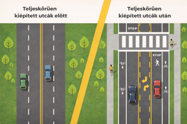Ilyen volt - ilyen lesz. A különbség szemmel látható (a kép AI által készített illusztráció, eredeti kép: smartgrowthamerica.org)
