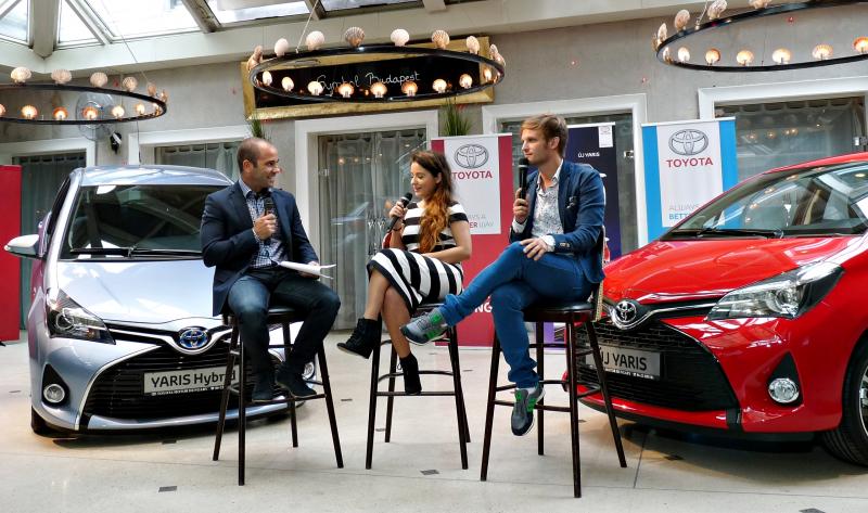 A tájékoztatóban elhangzott, hogy Európában minden harmadik Yaris hibrid rendszerű, míg hazánkban az ügyfelek 18 százaléka választja a kombinált hajtásláncot. A dízelmotorral szerelt verzió továbbra is az országúti és autópályás, nagy futásteljesítményű felhasználás esetén javasolt. A rendezvény házigazdája Kovács András Péter stand-up humorista volt, a sztárvendégek pedig Knoll Gabi és Puskás Peti. Az általuk tesztelt modellek benyomásairól természetesen KAP beszélt bővebben, utóbbiak az autó élvezeti értékét és dalra fakasztó mivoltát ecsetelték csak a feltett kérdésekre válaszolva.