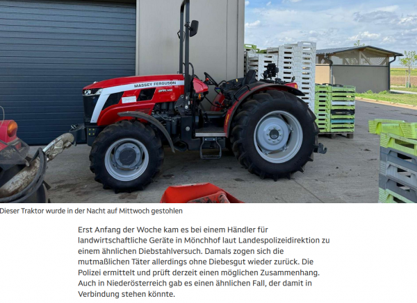 Az orf.at cikke és az ellopott traktor. Képernyőfotó