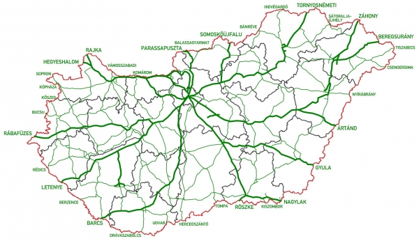 Magyarország főútjai jelenleg (Forrás: Wikipédia/MrSilesian)
