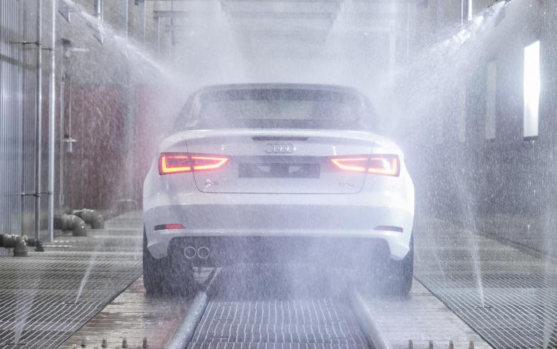 A teszt során az autó többszörösen nagyobb erőnek van kitéve, mint amivel egy monszunesőben szembesülne. A vizsgálat során biológiailag megtisztított és vízkőtlenített vizet használnak, amely egyidejűleg a lakkozást is kímélően tisztítja.
