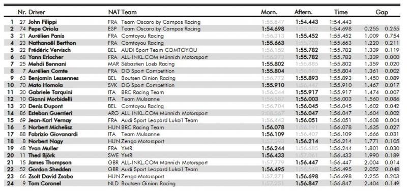 Ami a magyarokat illeti: az összesített eredmény alapján Michelisz Norbert a 16-ik időt autózta, a Zengő két pilótája, Nagy Norbert és Szabó Zsolt pedig a 18-ik és 23-ik lett.