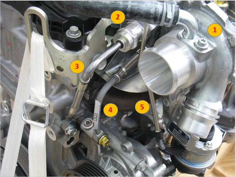 Egyes motorgyártók a turbótöltőbe menő kenőolaj csövébe (3) előszűrőt (2) helyeznek. Ez részben eltömődhet, így csökken a töltőbe jutó olaj. A töltő tönkremegy. Ha az új töltő felszerelésekor ezt a szűrőt nem tisztítják meg, illetve cserélik, az új töltő is rövid időn belül besülhet. Képünk az Opel 1,6 CDTI Szentgotthárdon gyártott motorja turbótöltőjének kenőolaj nyomóvezetékébe épített szűrőt mutatja.