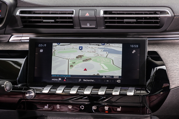 A központi érintőkijelző – a műszercsoporttal nagyjából egy magasságban – tökéletesen belesimul a műszerfalba. Az Active felszereltségi szinten 8” kapacitív képernyőnek Allure szinttől egy 10”, nagy felbontású változata került beépítésre. Hét – szintén a műszerfalba simuló – billenőkapcsoló tartozik hozzá, melyekkel a legfontosabb kényelmi funkciók (rádió, klíma, navigációs rendszer, gépjármű-paraméterek, telefon, mobil alkalmazások és i-Cockpit® Amplify (lásd lentebb)) bármikor közvetlenül elérhetők.