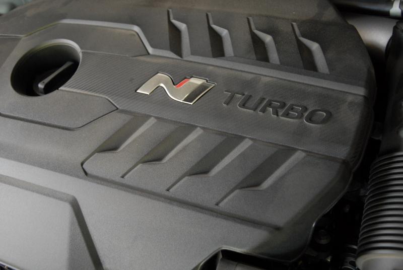 Kívülről nem feltűnő, mégis tekintélyt parancsoló fazonú az i30 N, nem véletlenül, mert négyhengeres, 2 literes T-GDI turbós benzinmotorja 275 lóerőt és 353 Nm-es (túltöltéssel 378) forgatónyomatékú.