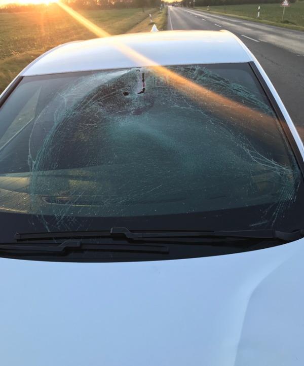 Udvarias hang jelentkezett. Mondtam vaddal ütköztem. Visszakérdezett, hogy egyedül vagyok-e az autóban, megsérültem-e, küldjön-e értem mentőt? Igazából csak ekkor néztem végig magamon, hála Istennek, semmi bajom. A ruhámon és az üléseken a szélvédő ripityára tört darabjai hevertek, a visszapillantó leszakadt, az adaptiv tempomatot és a sávtartó asszisztenst szabályozó kamera lógott árván az autóban.