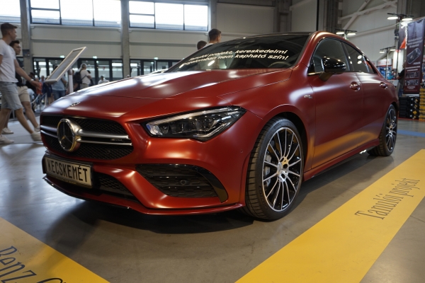 A kizárólag Kecskeméten készülő aktuális CLA modell kiállított verziója nem a technikájában, hanem a színében tér el a szériaverziótól. Matt meggy bordó árnyalatát a Mercedes-Benz Academy Kecskemét tanulóinak köszönhetjük, akik egy projektmunka keretében látták el ezzel a különleges matt réteggel a karosszériát. Ez a szín kereskedelmi forgalomban nem kapható.