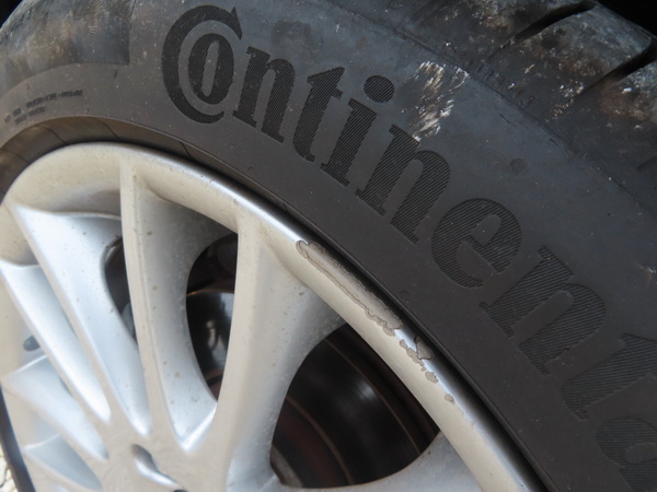 Még a kerekeknél maradva a felnik körben fénysérültek voltak, sőt, a bal első pereme is le volt verve. Ez van.