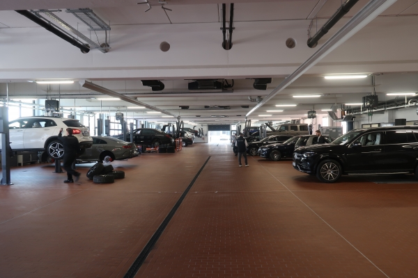 Az új szerelőcsarnok közel 73 ezer négyzetméteres telken létesült, a 11-edik kerületi Hunyadi János úton. Hasznos területe 1602 négyzetméter, 24 szerelőállással, és különlegességként 90 férőhelyes szervizparkoló van a tetején, ez az eddigi legnagyobb Mercedes-Benz szervizüzem Magyarországon. Járműmosó és több irodahelyiség egészíti ki, ez utóbbiakat a tetőre telepített szellőzőgépek szolgálják ki, zöld energiával. Az épület padlóba süllyesztett és mennyezeti hűtés-fűtése hőszivattyús. A legmodernebb műhelyberendezést (kétoszlopos járműemelők, fékhatás-mérő próbapad, központi olajellátó rendszer, sínes-csápkaros kipufogógáz-elszívó rendszer) építették be. Jól bejártam, megnéztem a szerelőcsarnokot, régi munkahelyemen, a Közlekedéstudományi Intézetben szervizfejlesztésen dolgoztam, és mindent a legmegfelelőbbnek találtam. Jó lesz itt, kitűnő körülmények között, autókról gondoskodni.