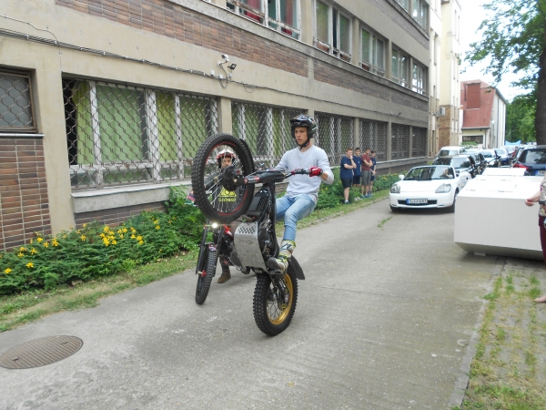 Rendkívüli mutatvány azonban igen, mégpedig Csizmazia Barnabásnak köszönhetően, aki a felvonulás során Szueged több pontján, így a Belvárosí hídon is látványos akciókal szórakoztatta a nagyérdeműt. A fotó és az autoszektor.hu kedvéért az indulás előtt is egy kerékre emelte a motort, némi riadalmat keltve ezzel a szűk kapubejáróba. - Nem kell érte aggódni, apjával lépcsőn járnak a motorral – mondta róla elismerően az igazgatónő.