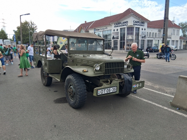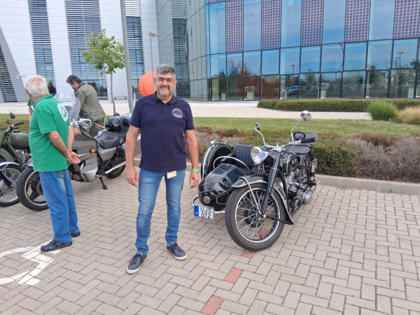 Találkoztunk Szilágyi Lászlóval, a Maros-parti Veteránjárműveket Kedvelők Sportegyesületének makói elnökével is, aki egy 1951-es évjáratú klasszikus BMW-motorkerékpárral érkezett, ami ráadásul oldalkocsis volt. Az elnöki jármű gyönyörű állapotban volt és az is látszott a kipufogócső elszíneződésén, hogy nem csak dísz.