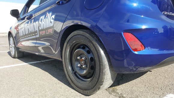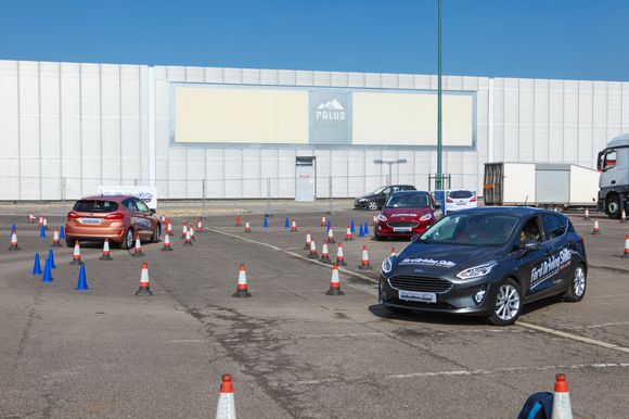 A Ford DSFL vadonatúj Fiestákat állított a tesztparkba, melynek talán az egyik leglátványosabb része a túlkormányzottságot demonstráló feladat volt. A Fiesta hátsó kerekeire egy magas kopásállóságú műanyag gyűrűt húztak, ami már nagyon alacsony sebesség mellett is úgy viselkedett, mint ha jégen autóztunk volna.