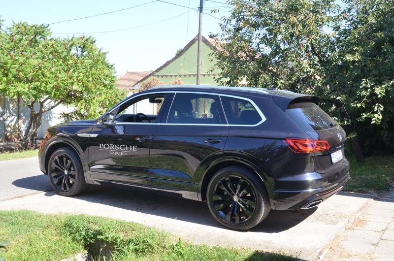 A Touareg határozott megjelenésű, hosszabb és szélesebb is, mint az elődje, ám a nagyságot a tesztautón sötét fényezése jótékonyan szelídítette. A sok krómozott rész meg vadította, van akinek kevesebb is elég lenne, nekem ez rendben volt. A nagyobb méret a jóval tágasabb csomagtartóban is megmutatkozik, ennek térfogata – álló hátsó üléssel – 697-ről 810 literre bővült. Tartalmát extra felszerelésként elektromos mozgatású csomagtérroló rejtheti el a kíváncsiak elől. Megnövekedett hosszúsága és szélessége ellenére az autó száz kilóval könnyebb lett, köszönhetően a vegyes anyaghasználatú, alumínium-acél szerkezetű karosszériának. A két fém aránya egyébként 48-52 százalék.