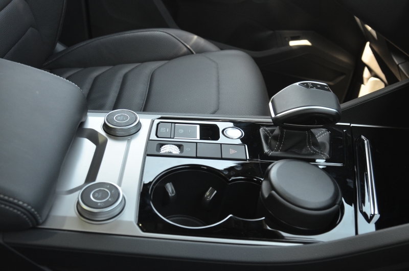 Azért nem minden kapcsoló tűnt el a Touaregből, kis forgótárcsával kezelhetjük az off-road csomagot. Ezzel tudjuk kiválasztani az aktuális útviszonyoknak megfelelő piktogramot, és az autó már teszi is a dolgát. A légrugós megoldásnak köszönhetően +25 és +70 mm magasságállítás lehetséges – de ha a bepakolást segíti, 50 mm-rel lejjebb is engedhetjük a kasztnit, mégpedig a csomagtartóból vezérelve.