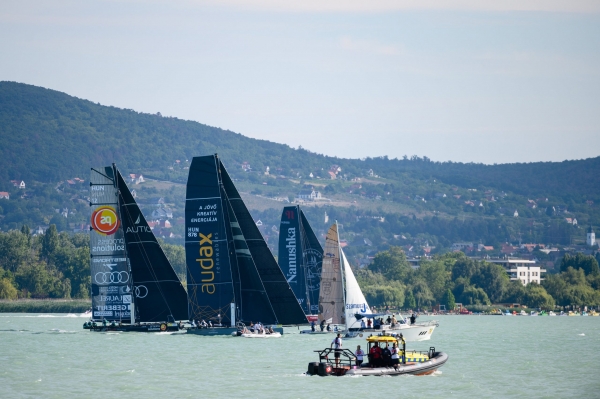 Zakariás Fruzsina, az Audi márkaigazgatója felhívta a figyelmet arra, hogy idén is megrendezik az Audi Speed Challenge versenyt a Kékszalag második napján, amelyen a balatonfüredi móló előtt a leggyorsabb katamaránok mérik össze tudásukat.