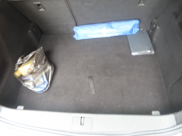 Ilyen esetekben szoktunk találni az autóban 1-2 kiló olajat a biztonság kedvéért, amit természetesen itt is felleltünk egy zacskóban, a csomagtérben.