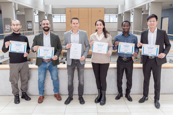 A csapat tagjai: Ortik Abdakimov, William Alizraee, Neda Sharifi, Bashiru Karim és Ho Nhan Duc hallgatók, valamint dr. Erdős Ferenc, a felkészítést végző egyetemi docens (balról a harmadik). (Fotó: Adorján András)