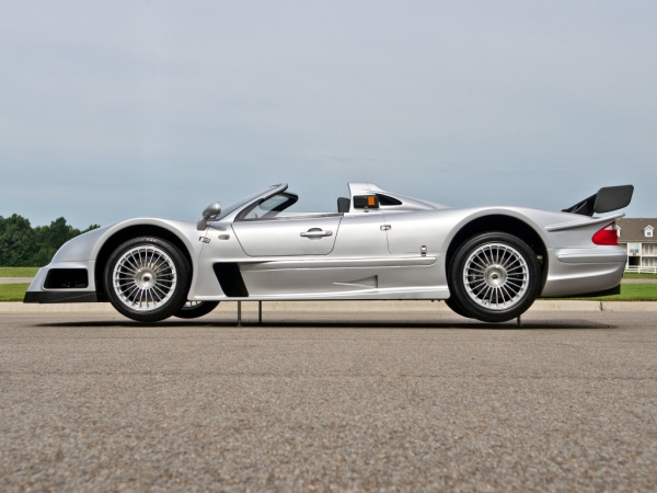 Utóbbihoz köthető Peter Dumbreck emlékezetes balesete, amikor a Le Mans híresen hosszú egyenesének domborulatán elemelkedett Mercedese és a fák közé repült. Ebből is látszik, hogy akkoriban mennyire szabadon engedték a motorerőt, és mennyire átadták a terepet a leszorítóerőnek. Eleve nehéz beleképzelni a Mercedes CLK kupéját ebbe a sziluettbe, a lámpákon és a hűtőrácson kívül nem sok emlékeztet az utcai modellre. Ettől függetlenül legyártottak belőle 20 kupé változatot és 6 roadstert a közutakra, ami elképesztően menő. Főleg, ha hozzávesszük, hogy 7,0 literes V12 dolgozott mindegyik közepében, 612 lóerővel, amivel 3,8 másodperc alatt repül 100 km/h-ra.