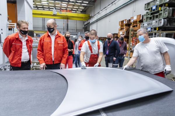 Több mint 110 ezer ügyfél választotta eddig a győri e-motorokkal szerelt e-tront – fogalmaz Alfons Dintner. Az elektromos motorgyártásban az új időket jelzi, hogy gyakorlatilag kész az a két futballpálya méretű csarnok, ahol a PPE platformon a legkorszerűbb villanyos motorokat gyártják. Itt 700 ember dolgozik. Alfons Dintner nem kis büszkeséggel említi, hogy a legújabb e-tron GT-be Győrben szerelt karosszériaelemek kerülnek.